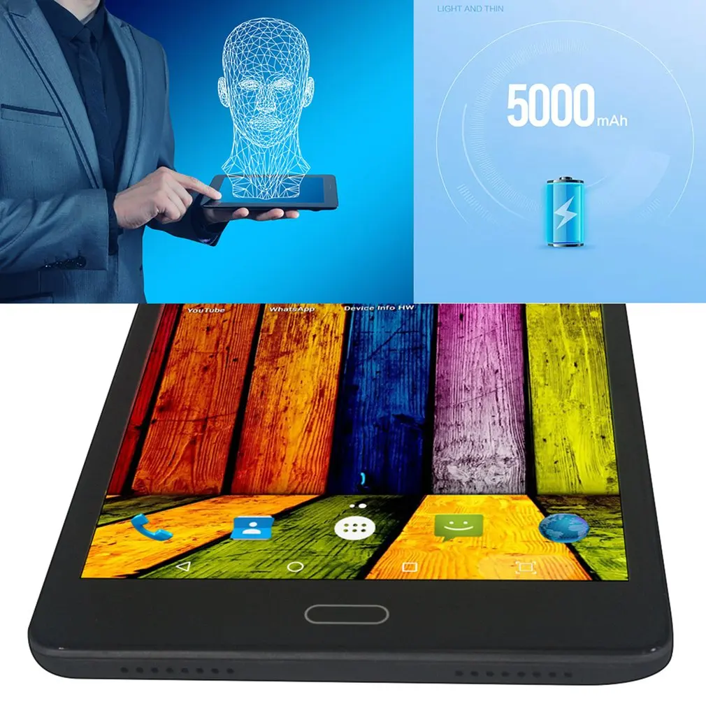 Features: Equipped with better performance, delivering plenty of power for multitasking and fueling casual games and movies. Substantial high-bandwidth RAM to smoothly run your games, photos and video-editing applications, as well as multiple programs and browser tabs all at once. Dual camera to catch life's moments. Start a video call with family and friends at leisure time. Large capacity battery reduces you free from shortage of power and frequently charging trouble and delivers long battery life. Specicications: OS : Android 6.0 Language: Multi Language Support CPU: MT6580 Quad-Core Screen Size: 8 inch Battery: 5000mAh(Undetachable) Display: 1920 x 1200 Storage: 4GB RAM 32GB ROM Front Camera: 5.0MP(interpolated 5.0MP) Storage Extend: 32GB Rear Camera: 12.0MP(with 1A LED flashlight) Features: WIFI, Bluetooth, LTE etc... SIM Card: Dual SIM Card or 1 TF Network: 2G: GSM 850/900/1800/1900MHz 3G: WCDMA 900/2100MHz 4G: LTE Plug type:US , EU plug Package included: 1x Tablets 819 1x Card pin 1x D/C2.5 Charger 1x Type-c 1x User Manual
