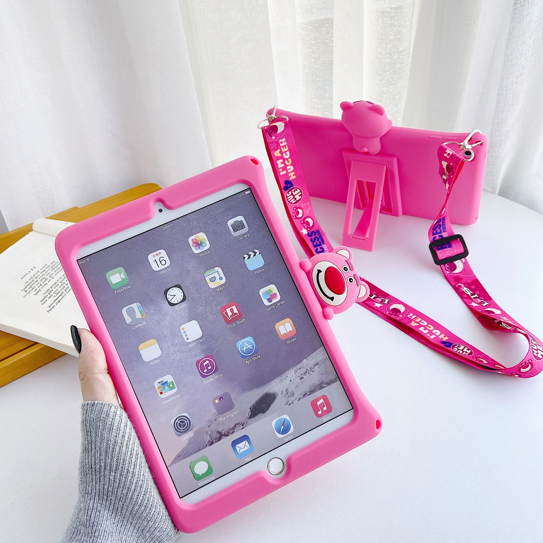 Cover For iPad Mini 1 / Mini 2 / Mini 3 Cartoon Kids Case For iPad Mini1 / Mini2 / Mini3 Tablet Silicon Funda + strap