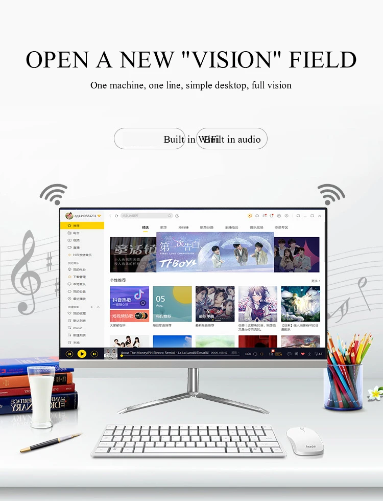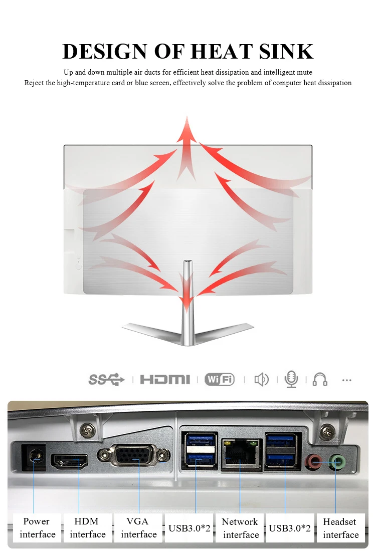 US Captain Fast PC Desktop 24 inch 16G RAM 1T SSD Ultrathin Curved Surface All-in-One Computer for Office and Home