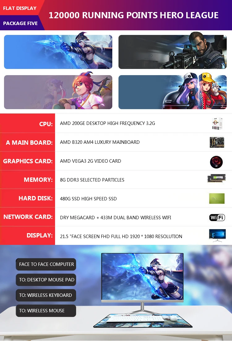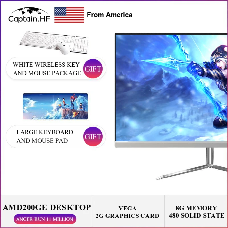 | US Captain PC Desktop All in One Computer 21.5-inch Narrow Frame UPS RAM 8G SSD 480G UPS Office, Home, Study, Work |