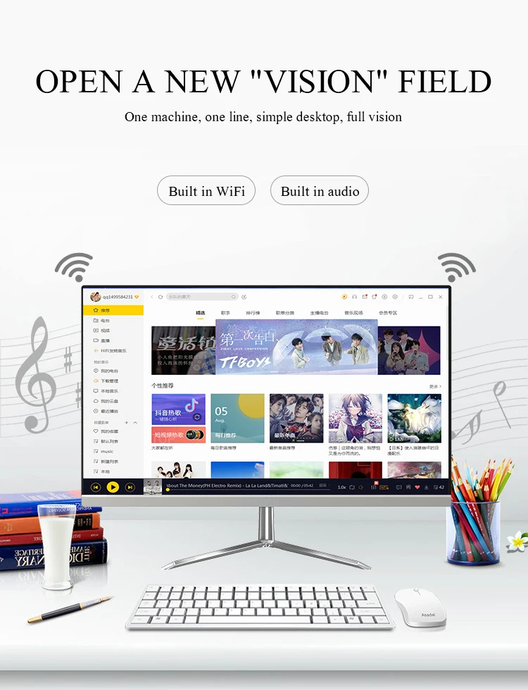 US Captain Fast PC Desktop 24 inch 16G RAM 1T SSD Ultrathin Curved Surface All-in-One Computer for Office and Home