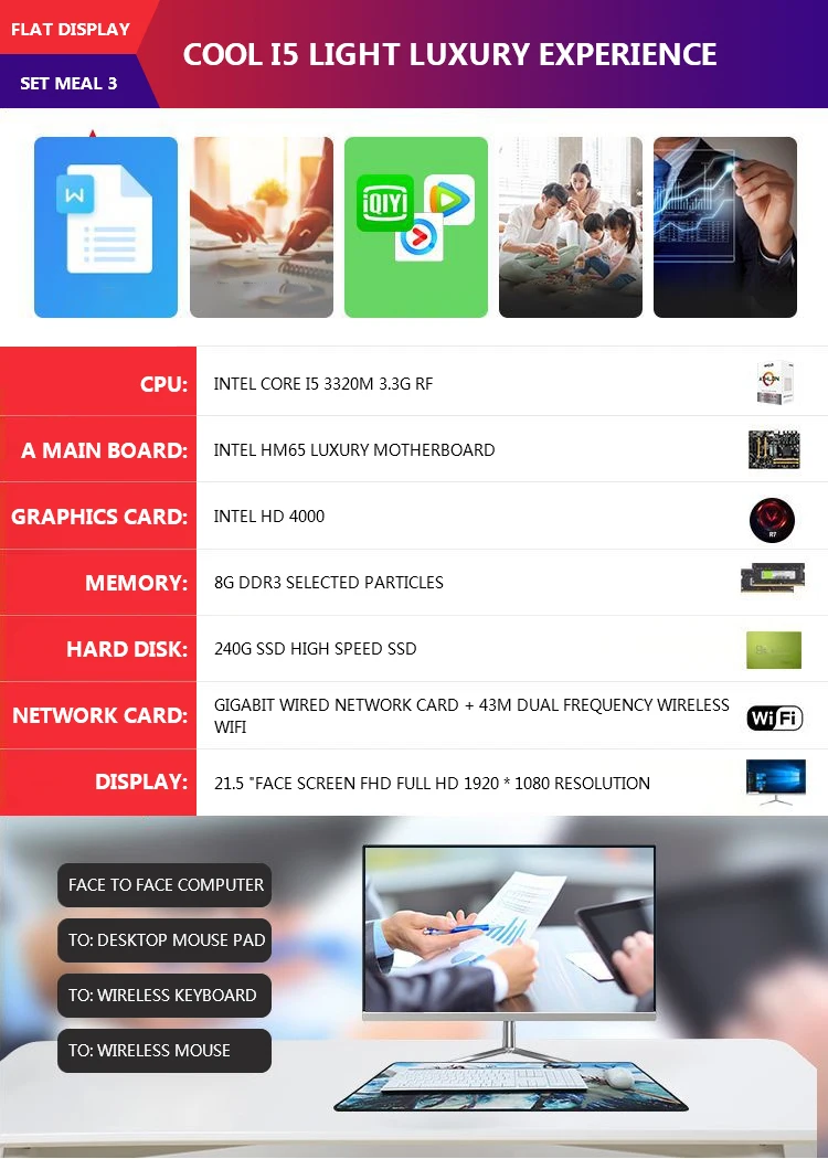 | US Captain PC Desktop All-in-One Computer i5 8G RAM 240G SSD 21.5-inch Narrow Frame, Power On Network UPS Continuous |