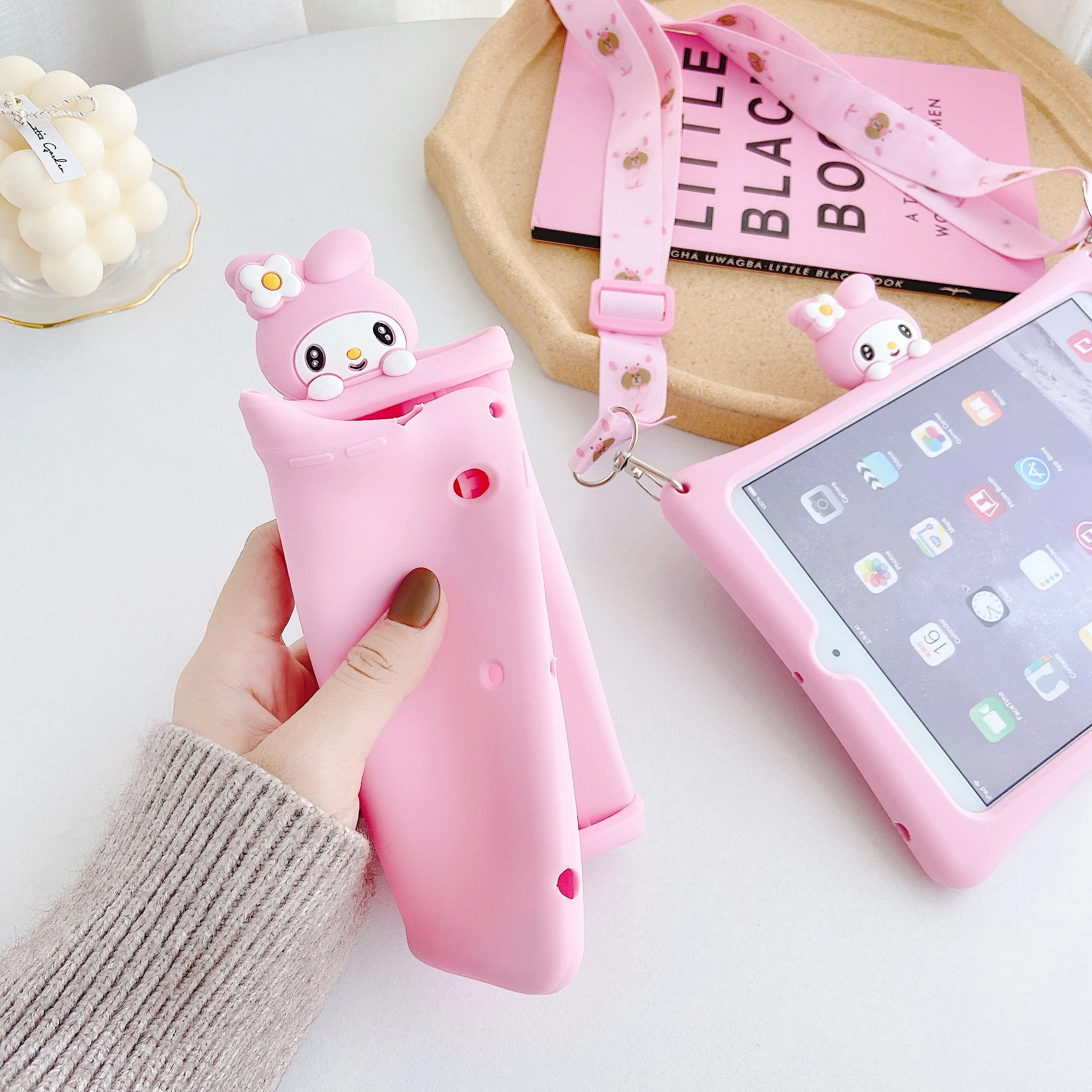Case For iPad 9.7 2017 2018 5th 6th 7th 10.2 Pro 9.7 10.5 11 Air Cartoon Kids Cover For Mini 1 2 3 4 5 Silicon Funda + strap