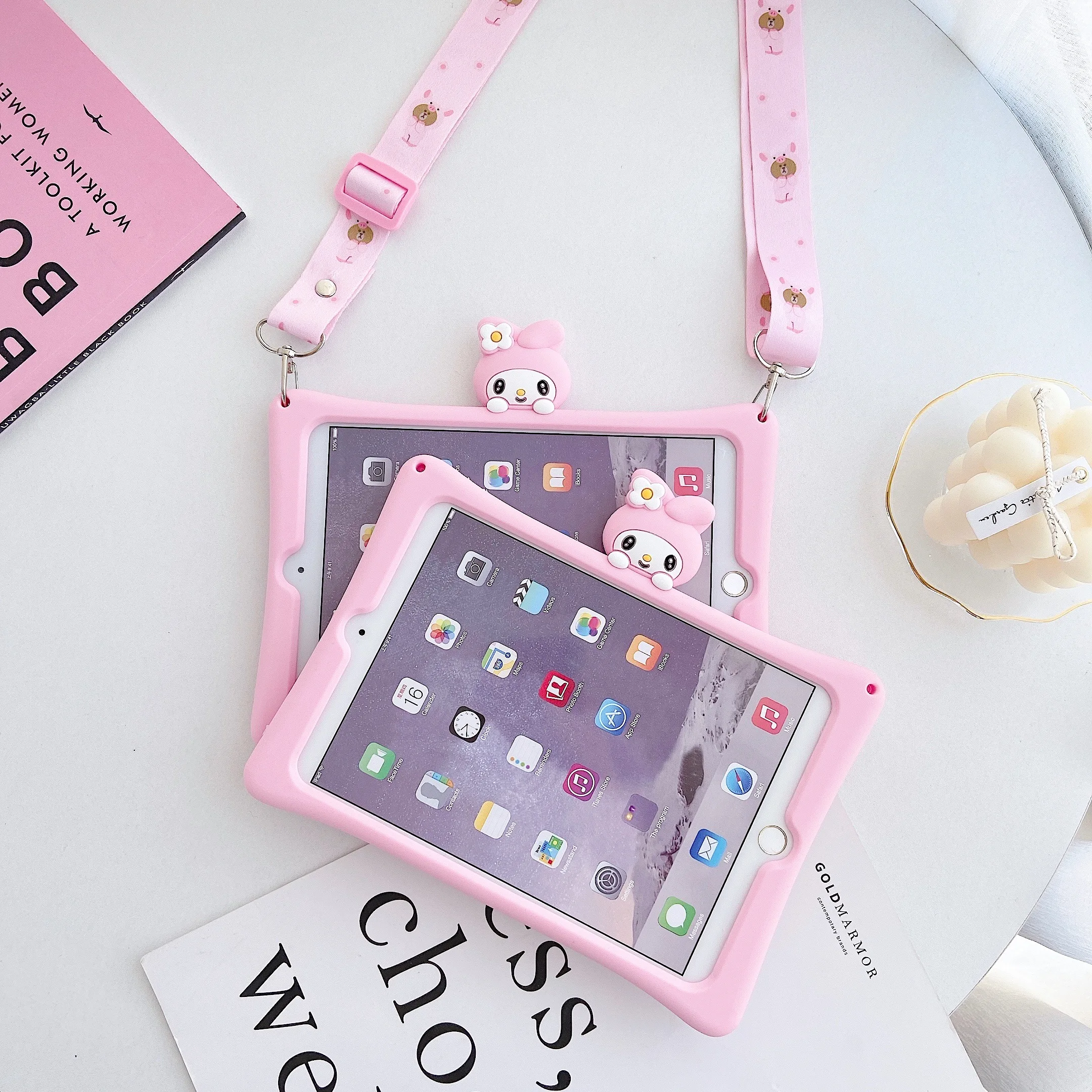 Case For iPad 9.7 2017 2018 5th 6th 7th 10.2 Pro 9.7 10.5 Air 1 2 3 Cartoon Kids Cover For Mini 1 2 3 4 5 Silicon Funda + strap