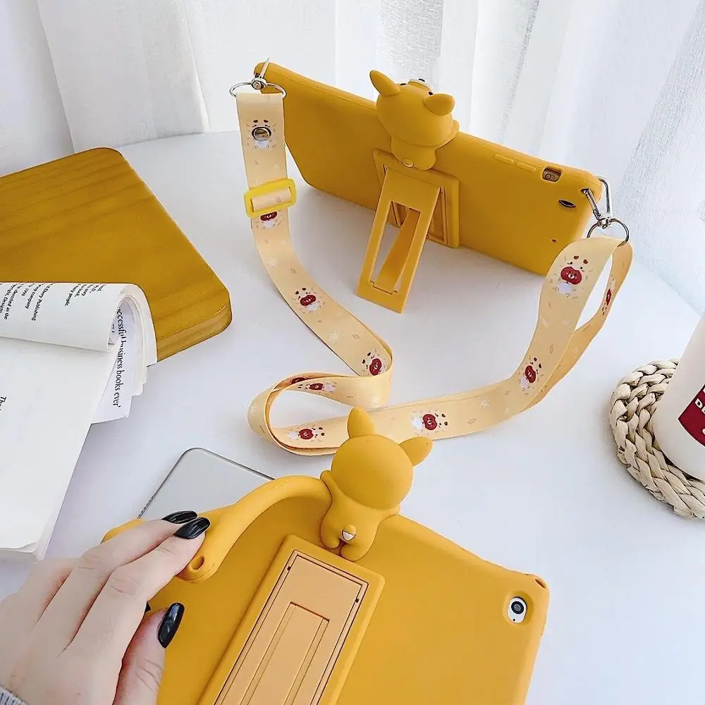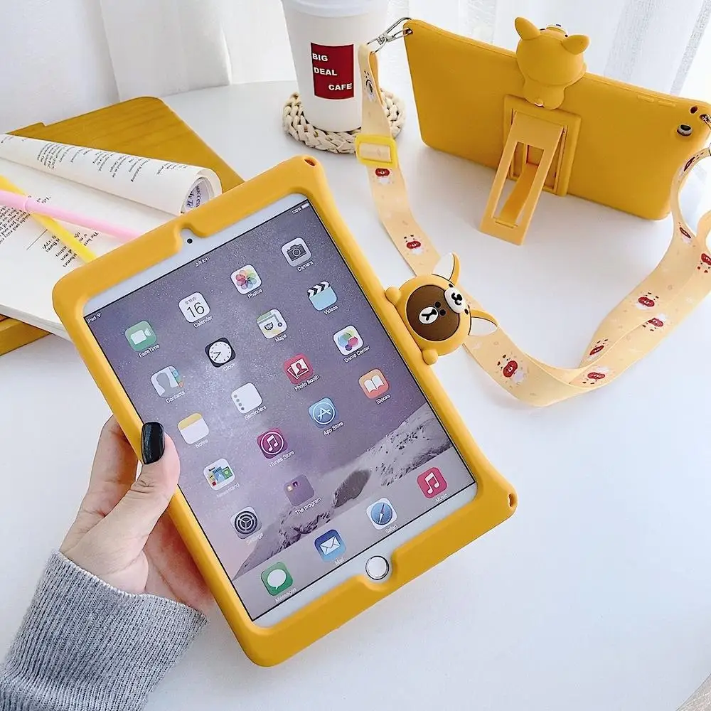 | Cover For iPad Mini 4 Cartoon Kids Case For iPad Mini4 A1538 A1550 Tablet Silicon Funda + strap |