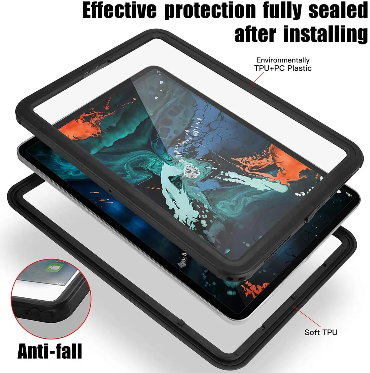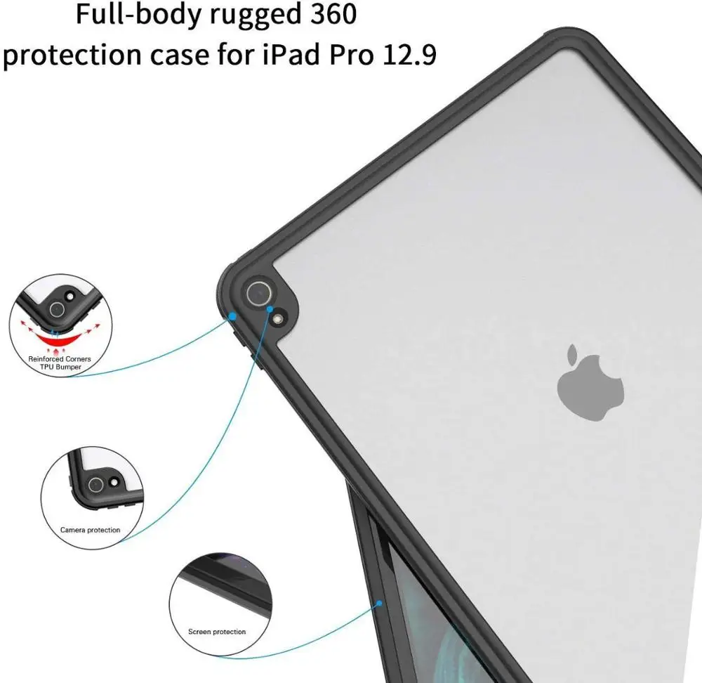 AICase Waterproof case for Apple New IPad Pro 12.9 2018(3rd generation ),Bulit-in screen protective case with 360 degree protection