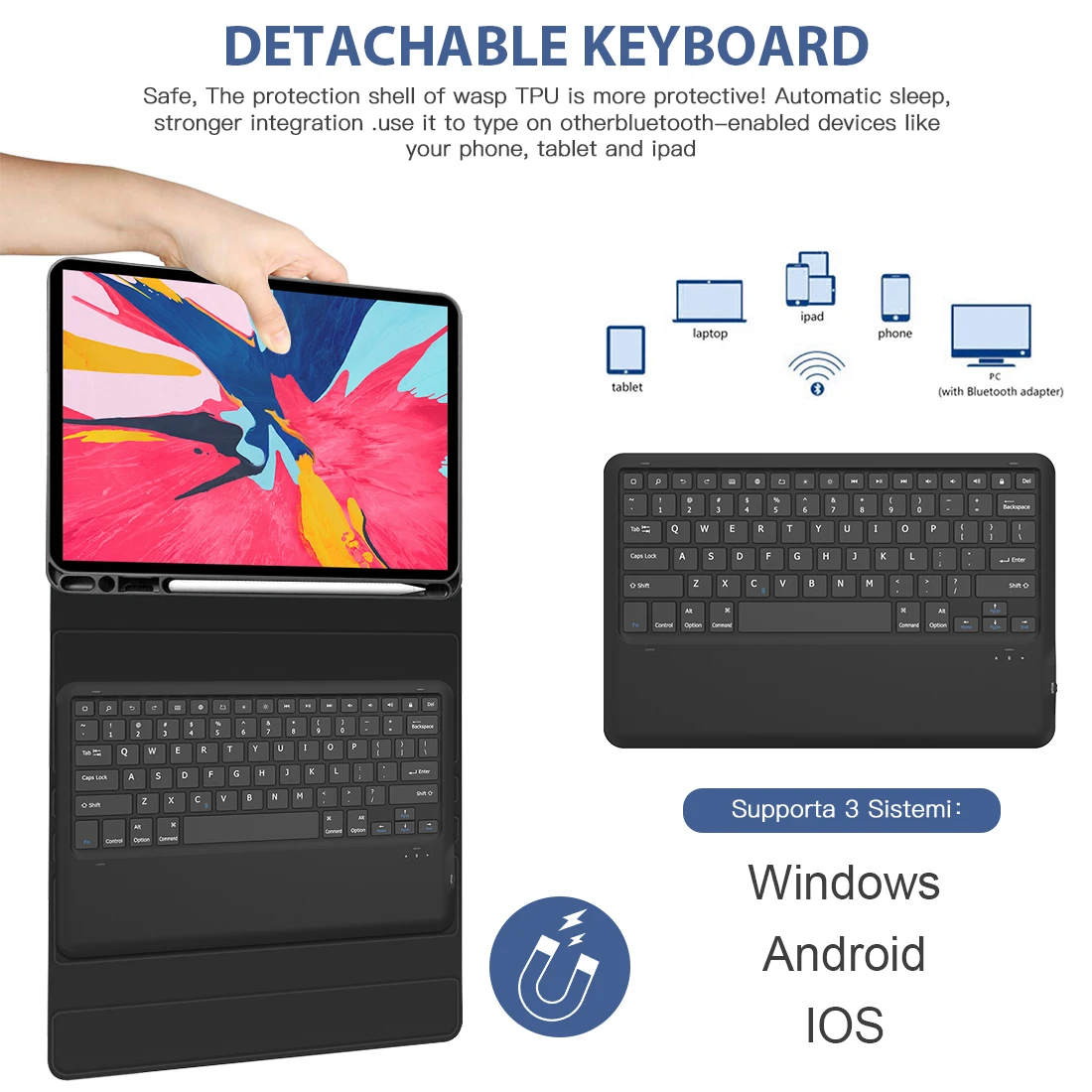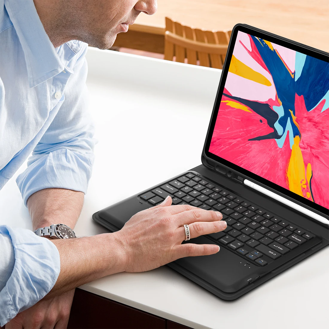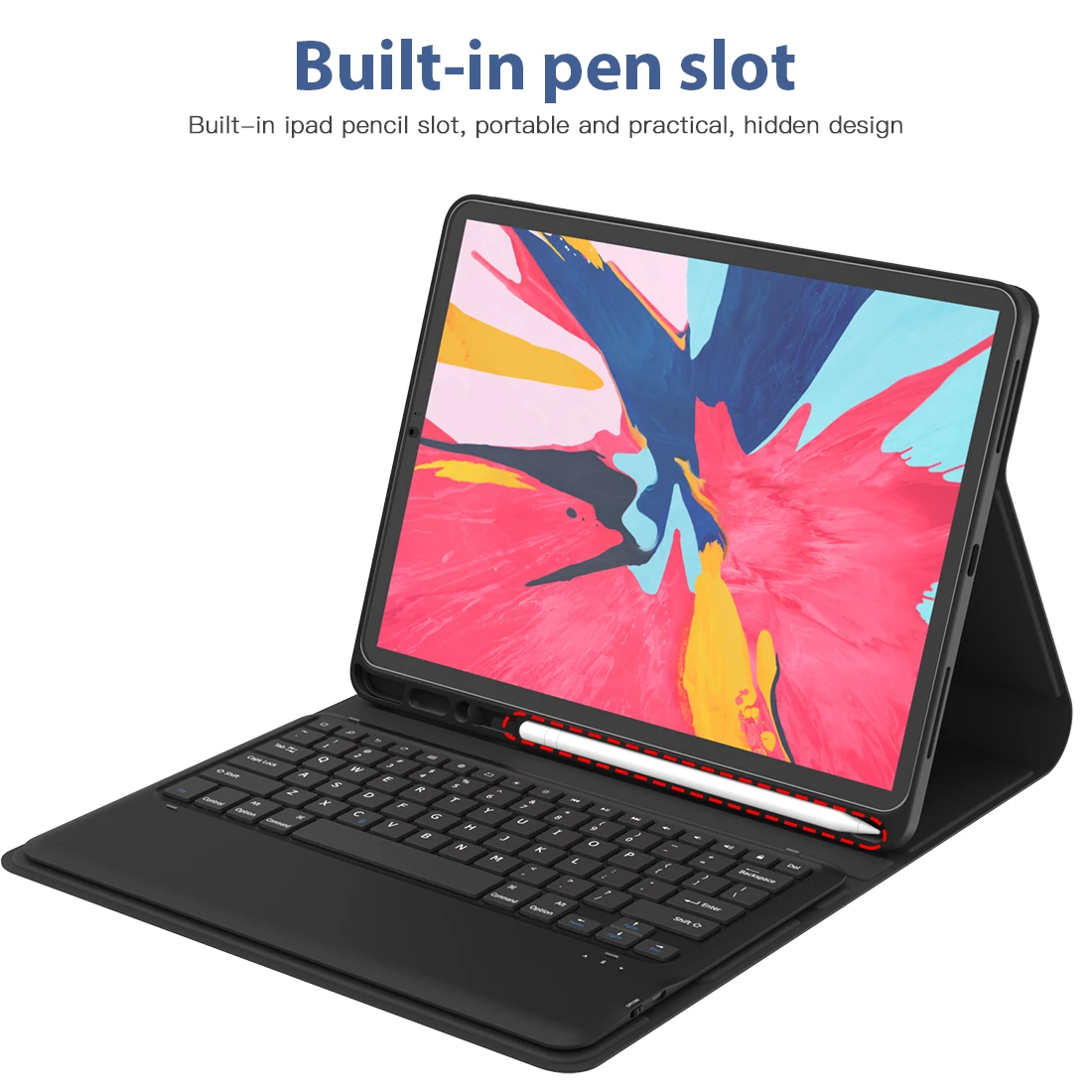 | Waterproof Case For iPad Pro 12.9 11 2020 Bluetooth Tablet Keyboard Leather Case American Detachable Keyboard + Pencil Holder |