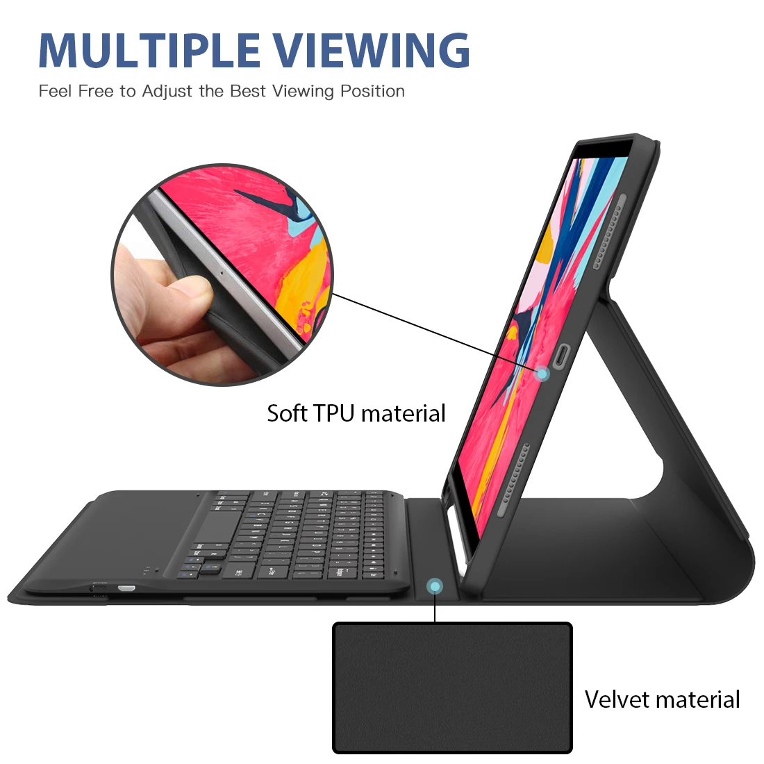 Keyboard PU Leather Bluetooth Case - ONLY fit for iPad Pro 12.9 11 Inch 2020. This great quality portable artificial leather folio flip case protector brings your tablet a full comprehensive protection. The fashion appearance lets your tablet look stylish and good looking.