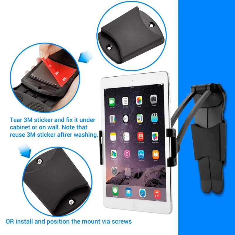Specification:Type: Tablet Wall Mount StandNet weight:550gPackage Include:1* Kitchen Tablet Mount Stand1* Allen “L”hex keys1* screw set1* 3M sticker wall base
